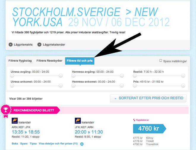 Nytt på sidan är såklart en genomgående förändring i designen. Sökningen har blivit enklare och tydligare, liksom resultaten och möjligheten till att ställa in sina sökningar efter behov, inte minst genom vår ”rekommenderade biljett” som hjälper dig hitta en biljett som både är snabb och billig.